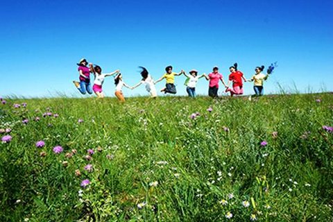 抵达后接受蒙古族最高礼仪下马酒敬献哈达,简单休息后,了解蒙古族传统服饰蒙古袍的特点和发展历史,穿上蒙古袍在辽阔的大草原上伴随着蒙古特色音乐伴奏,在草原上载歌载舞,愉悦身心。