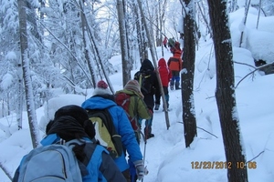 13:00 左右抵达山顶,集体拍照合影,然后沿原路返回。(继续前行,便是传说中的雪乡。需要购买雪乡的门票,因在雪乡消费极高,因此不建议进入雪乡游玩)。下山途中,雪路湿滑,一定要注意安全,如有兴趣,可带雪板(塑料板)上山,在部分路段打雪滑梯滑下,但要注意自身及上山人的安全,不要发生碰撞。