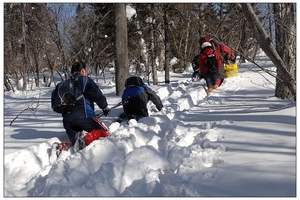 15:30 返回至上山途中的木屋处,短暂休整后,体能稍差的人员可乘马拉爬犁返回雪谷住宿地,其他人员继续原路返回。