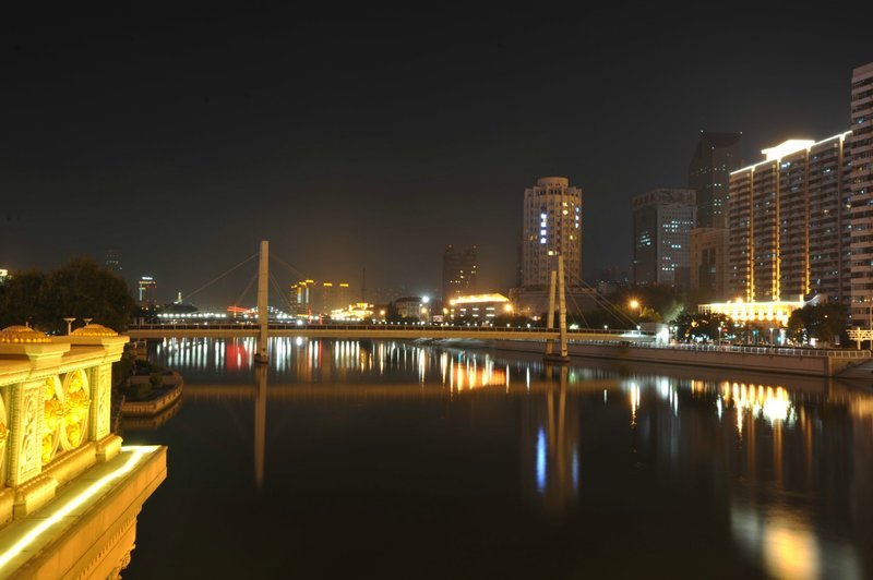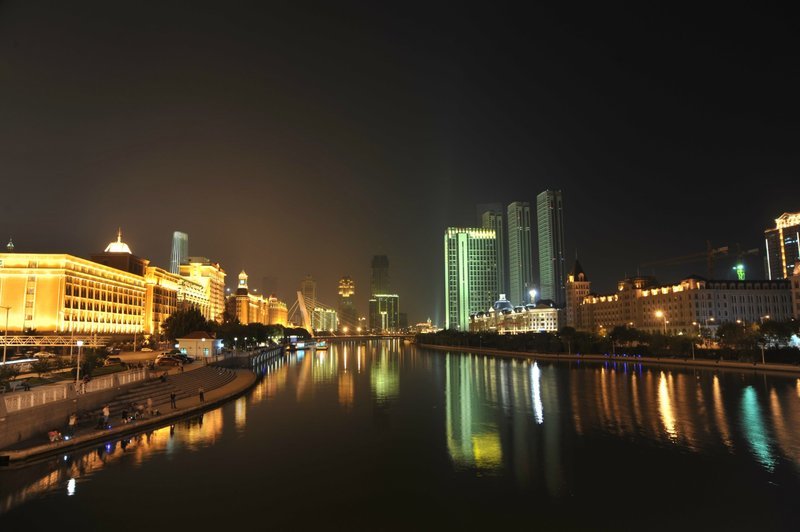 深呼吸户外的旗帜,从此在天津海河沿岸炫丽的夜景中展开并持续着……