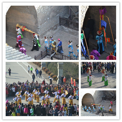 大年初四,正式开始我们的古城游,平遥古城的交通脉络由纵横交错的四大街、八小街、七十二条蚰蜒巷构成。一大早西门就开始了民俗表演,站在高高的城墙上,观看着民俗表演,仿佛大家一起穿越到了古代。