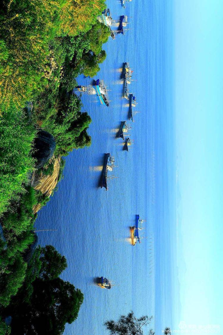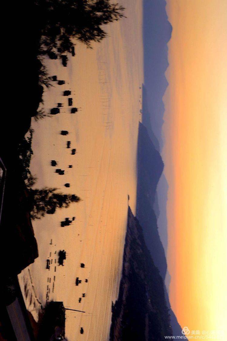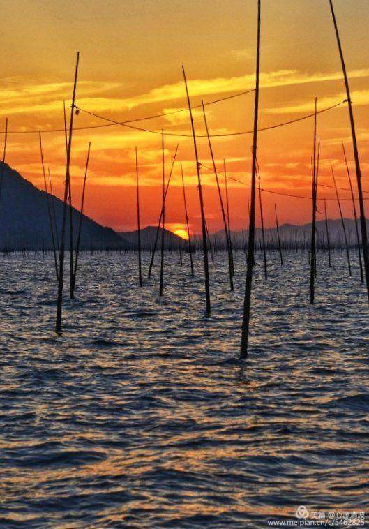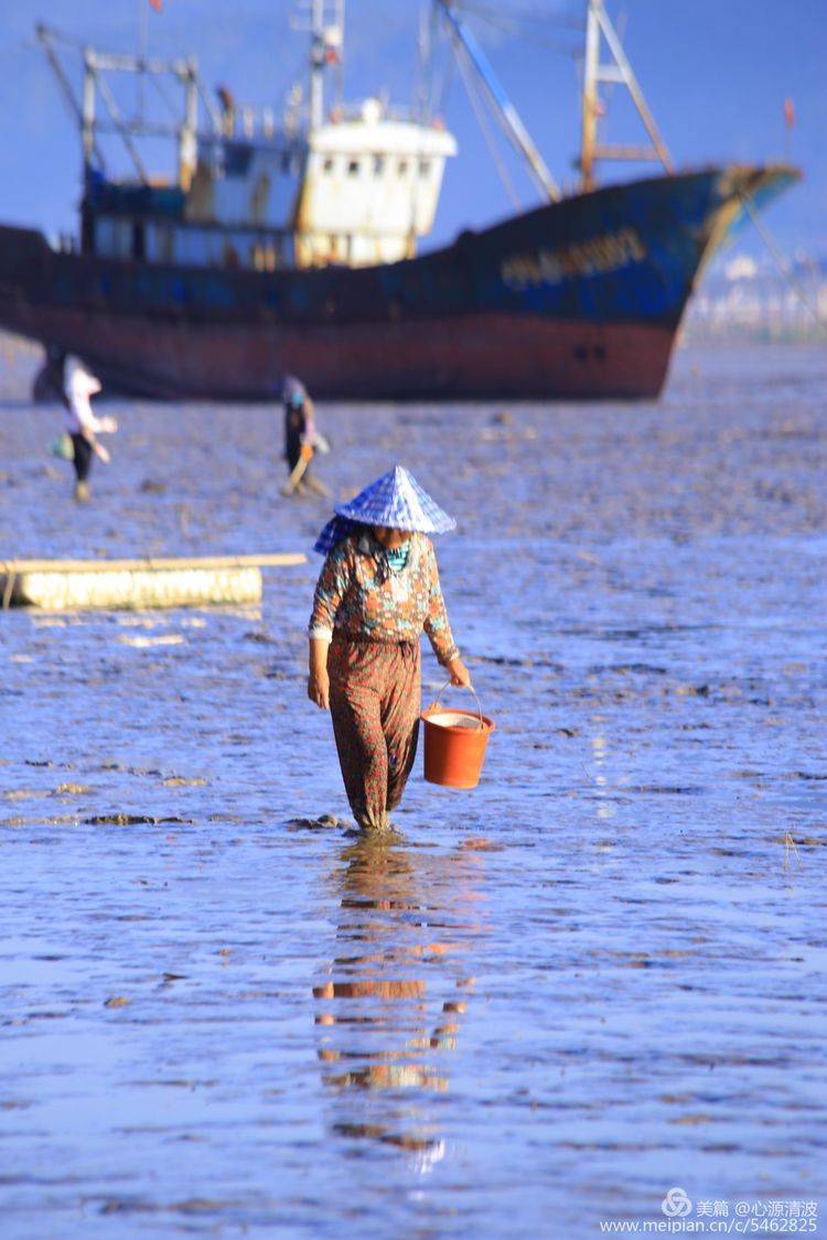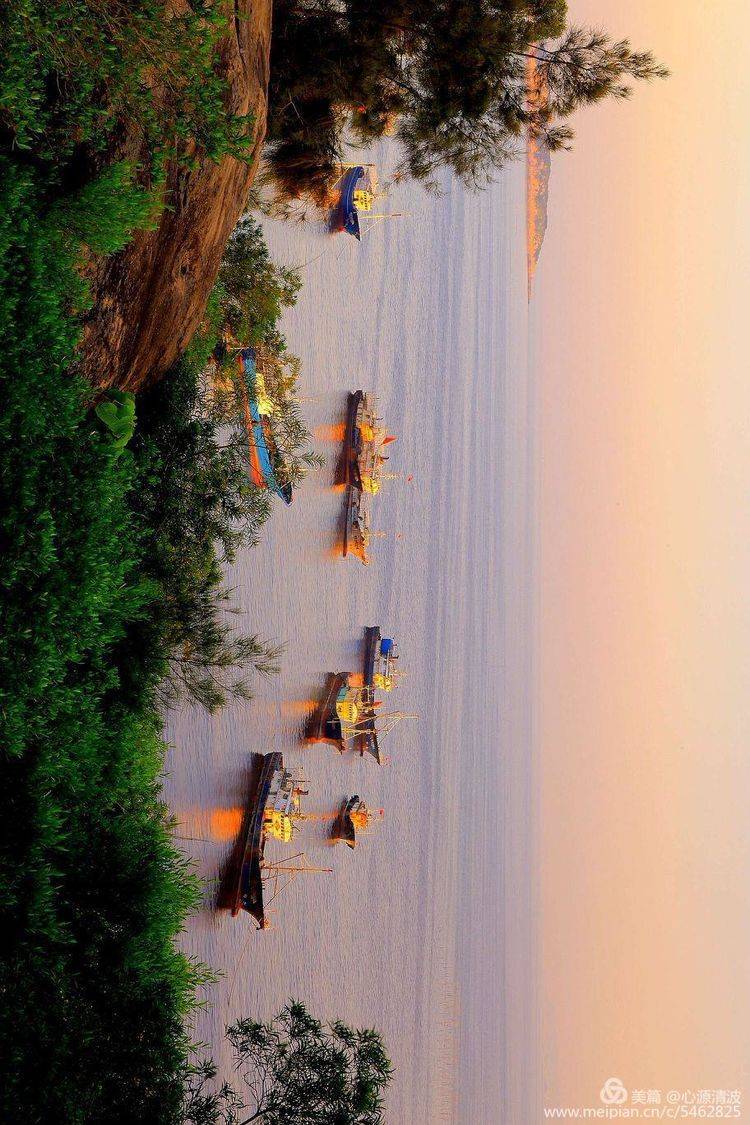 待到红日腾升,天空彩霞缤份,海面波光闪烁,远山黛色横波,渔夫、阿婆的辛勤劳作,海鸟的的悠闲觅食,与大海、远山、岛屿浑然一体。