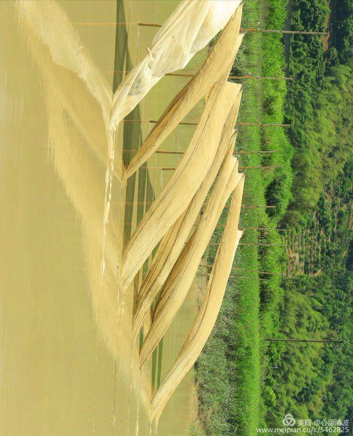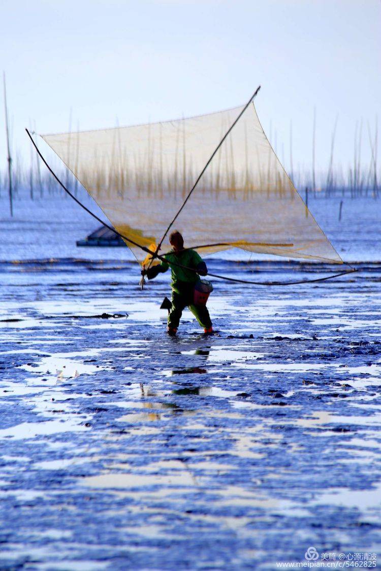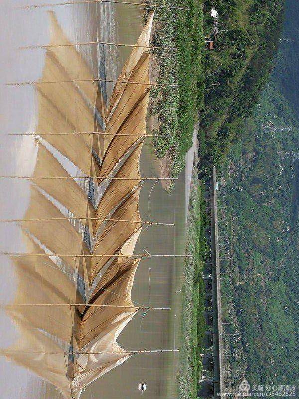 低垂的渔网,在风的鼓动下,象涨满希望的风帆,逆风前行,蔚为壮观。