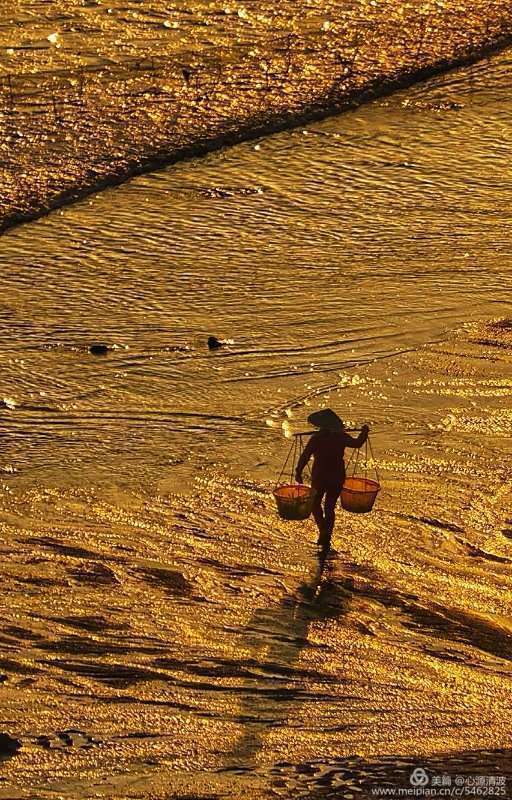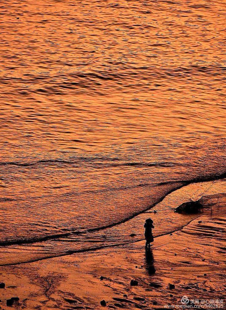 傍晚归航的渔船停靠安静的港湾,赶海人的辛勤劳作,走在夕阳下的海滩,留下一道道优美的曲线。金波荡漾,波光闪烁,天际金色无瑕,愿我们的生活充满金色的霞光。