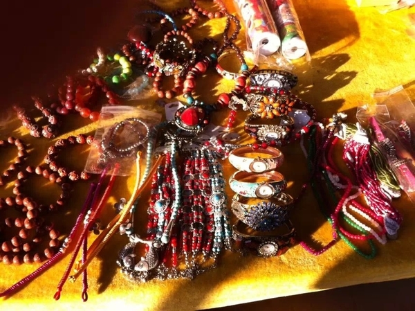 集市上各种具有当地特色的首饰很受欢迎