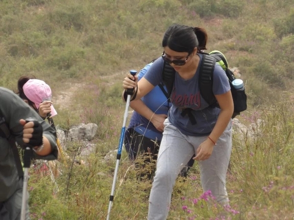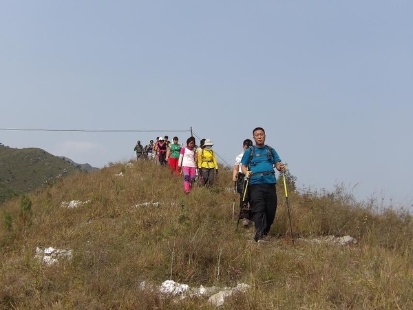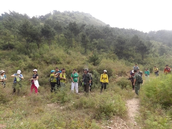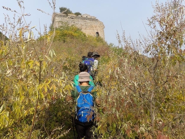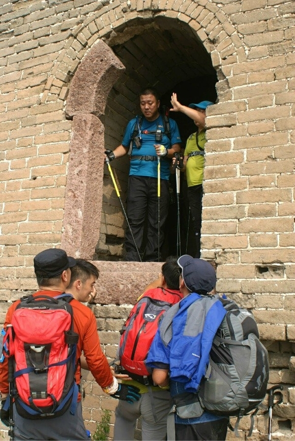 因为这次是逃跑路线,大概三点半的时候在距离下山很近的一座城楼休息。老大给我们给大家讲解户外知识,从穿着到行走技巧,给我们演示怎么调节背包等等。