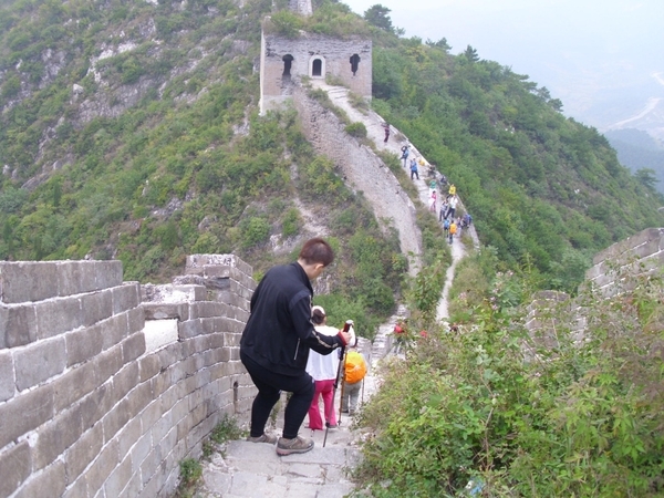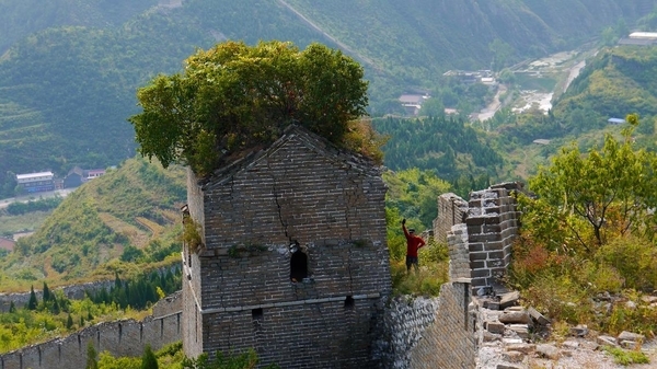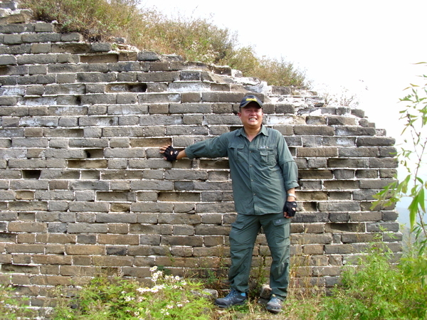 经过几百年风雨的剥蚀,有些原始城楼已经很残破,雉堞马道上的道砖早就没影了,露出了崎岖不平的墙体粗砺的向远方延伸。远眺那飞舞于莽莽群山之巅的巨龙,那雄浑的气势,激动的心情油然顿生,“不到长城非好汉”!