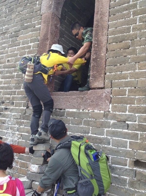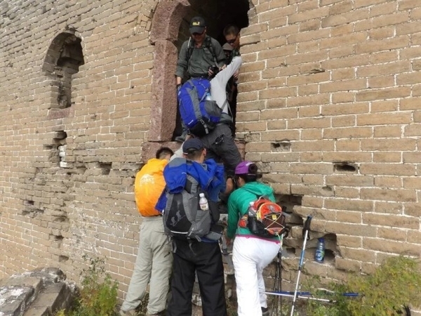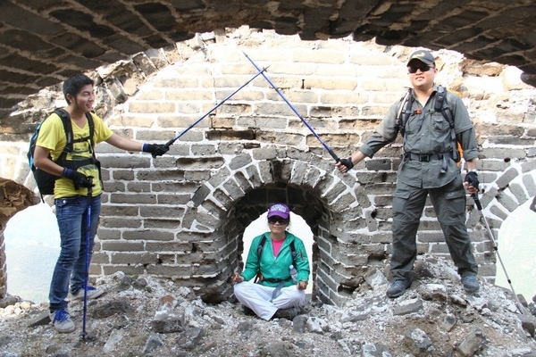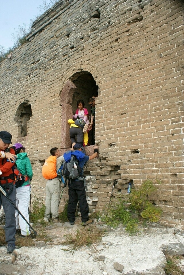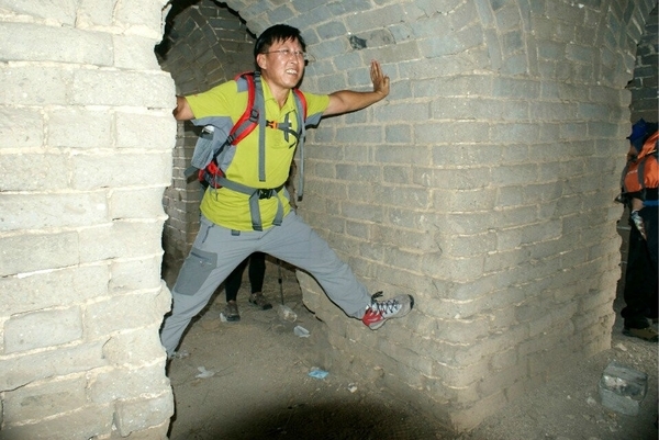 在神威楼大家一些年纪稍大体力不好的驴友自愿留在城楼休息,因此穿越队伍分为A B 两队,休息片刻后A队继续穿越.