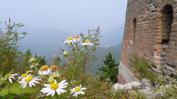 偶尔的凉风吹过,为大家的攀爬解除了不少劳累。随处可见的野花给阳刚的长城增添了一点点的柔和美。大家一边走一边采摘长城边上的酸枣,放在嘴里,酸酸的感觉,沁入心脾。