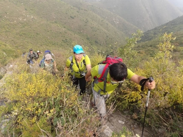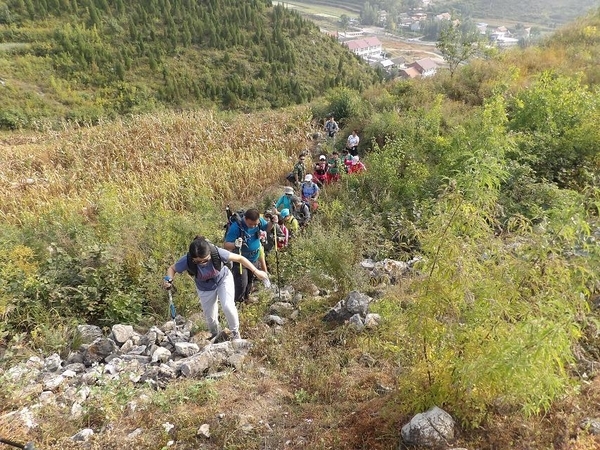 我们挥起手中的登山杖高声呐喊,从此白羊峪的穿越路上留下了我们“深呼吸”的足迹。