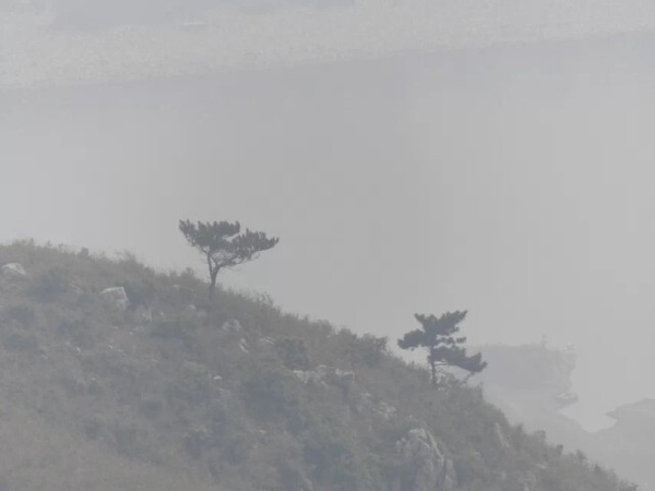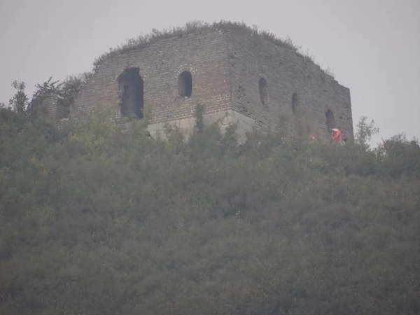 四点钟大家继续前进,刚走一会突然变天,远处天空灰蒙蒙的一片,马上就下起了小雨。大家立刻加快脚步了到前面不远处的城楼躲雨。