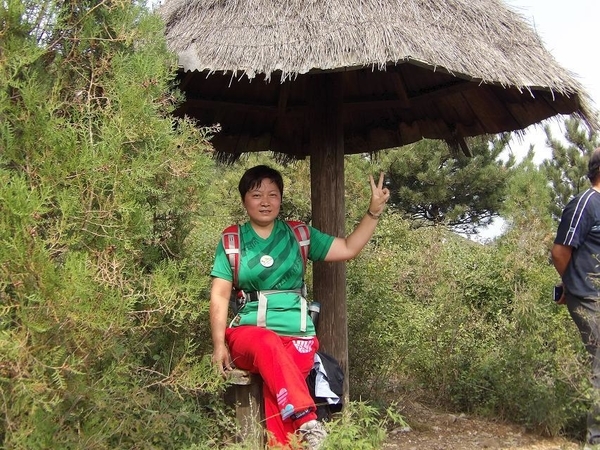 我的鞋子不是登山鞋,我得小心前行。终于爬上来了,我要坐下休息休息,吃个苹果补充体力