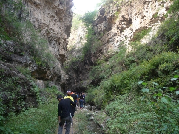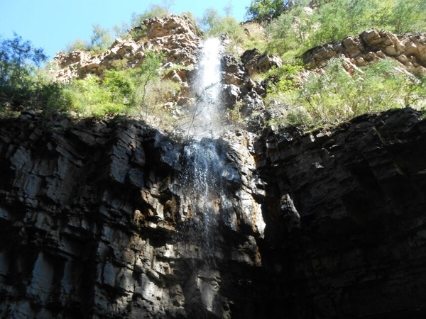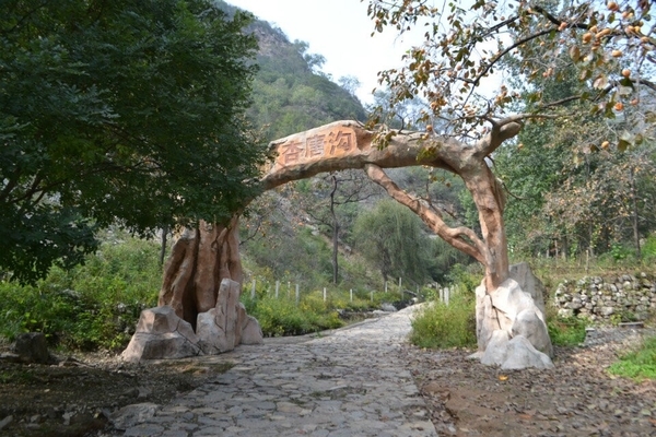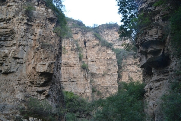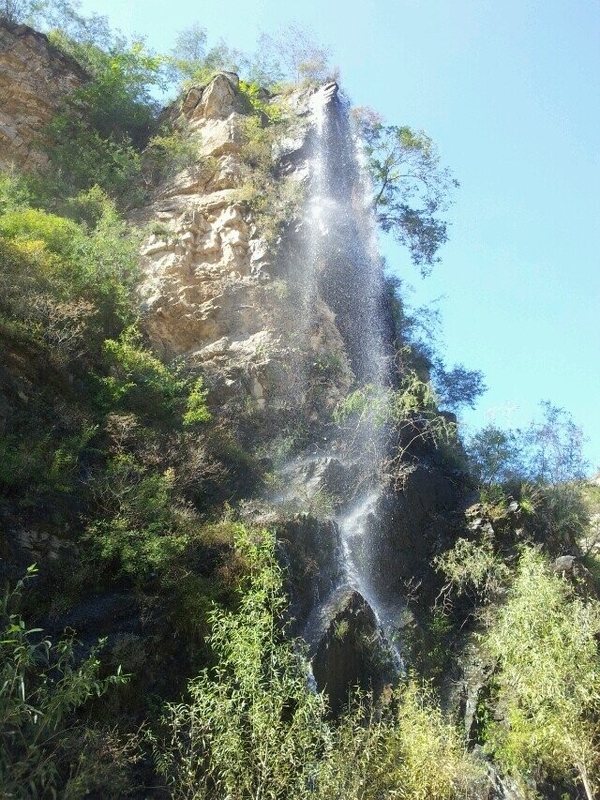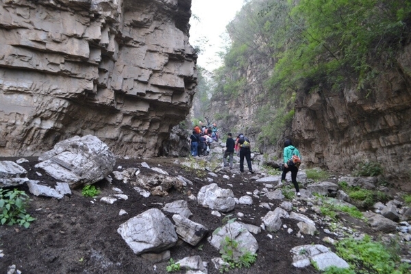 抬眼望去,一棵粗犷的人造古树跃入眼帘,它弯曲盘绕成拱形,犹如景区的大门,上面写有“杏唐沟””三个遒劲的大字。杏唐沟(又名杏唐沟大峡谷)位于河北省顺平县神南乡王家庄西北,地处太行山东麓,是道教名山青虚山的一条支脉。杏唐沟被当地人称为二十里大峡谷,一切景物皆“自天地之生成,归造化之品汇”。随着地势逐渐升高,峡谷呈现平台式上升趋势,渐渐地我们进入了另一片天地。草木丛生,上山的小路湮没在灌木丛中,到处生机盎然的景象。我们排成了“一”字形队伍向上攀登。