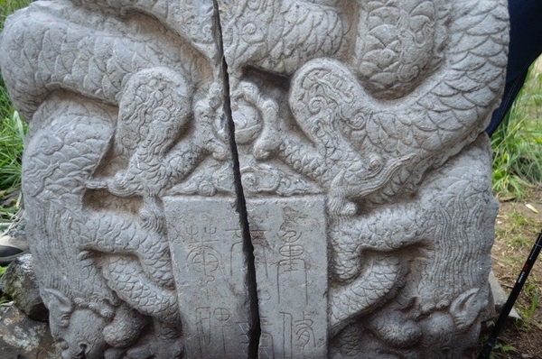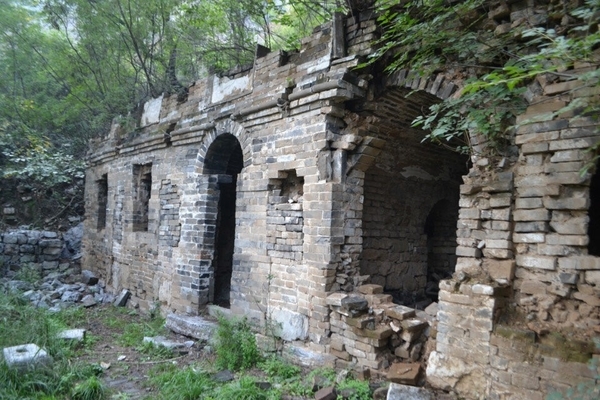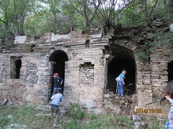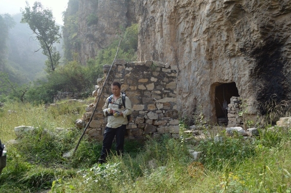 当上至视野较为开阔的地方,可俯视深不可测的峡谷。上到半山腰一处较大的平地后,我们驻足休息顺便探访宋代佛寺、道观、钟鼓楼(因年代久远,某些景观已无处寻迹)。当我来到这座佛寺后,眼前的景色是一派荒芜,钟鼓楼已经残缺不全,院落杂草丛生。两块碑文石刻安静地躺在杂草中,石建的道观破败不堪。传说这里曾是道教圣地,创建此道观的主人叫孙不二,是金代全真教第二代教主马丹阳之妻,道观名曰不二庵。 老大佐笾为大家讲述有关孙不二俺的历史。我看着断裂的石碑,端详着无法识别的文字,不知这碑源自哪一位能工巧匠之手,经过千锤百炼、精雕细琢而成,在沐浴了千百年风风雨雨的洗礼后,落得粉身碎骨的下场,令人惋惜。