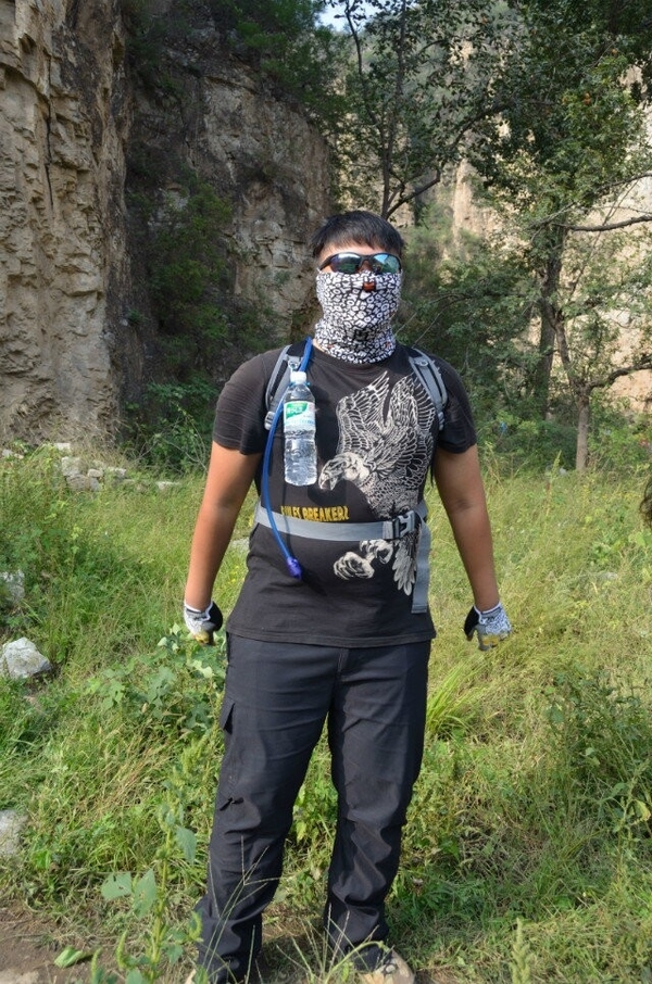 寻完古庙,原本继续向山顶冲刺,考虑到天色已晚不得不原路返回。虽然我们崇尚游山玩水,户外旅行,但绝对是在安全的前提下进行,在尽享山、水、人文的韵味和特色中,陶冶自己的情操,放飞心情,锻炼身体,磨练意志等等。我们按原路返回至景区大门,我突然想起沿路怎么就没见一颗杏树呢?原本我以为“杏唐沟”因漫山遍野的杏树而得其名,即是美景也是意境,再融合到绵延几十里的奇洞、怪石、野花、溪流、瀑布、翠柏等中。蓝色的天空和棉絮般的白云悄然而去,预示着我们第一天的杏唐沟穿越完美结束。