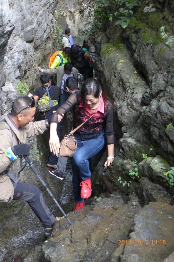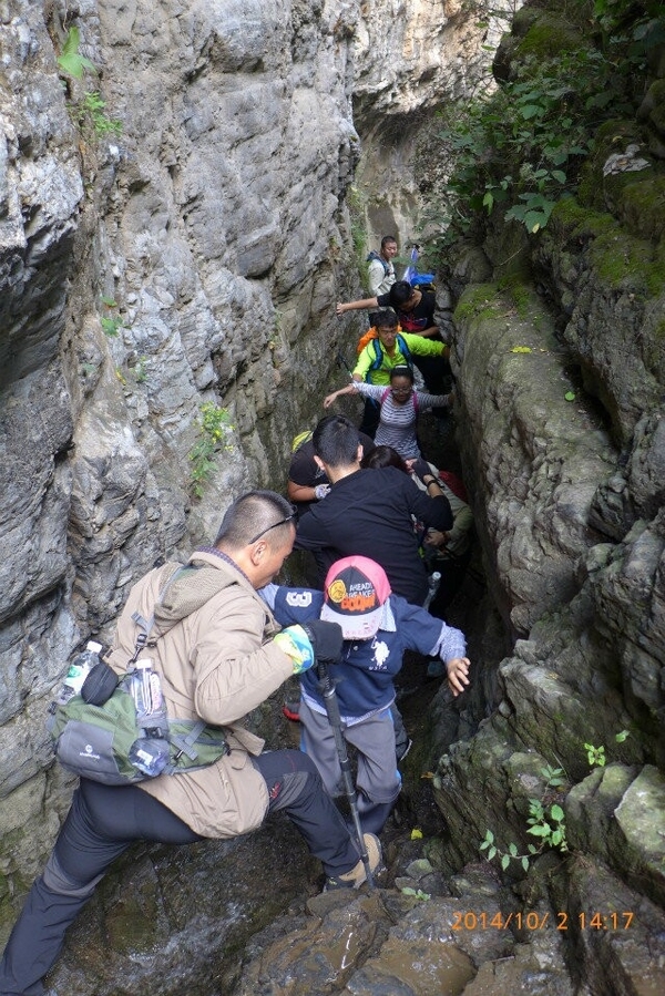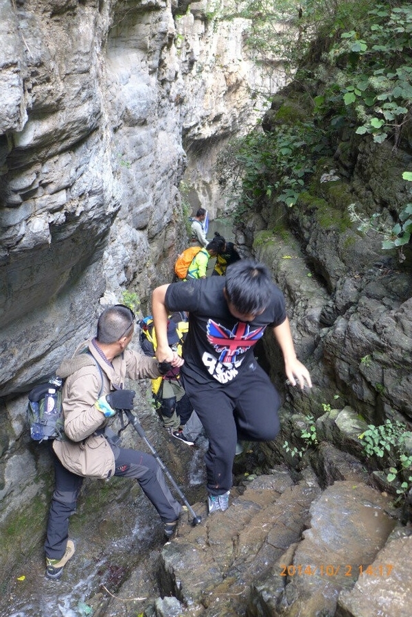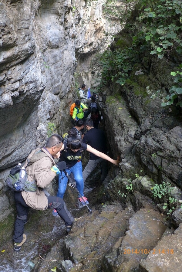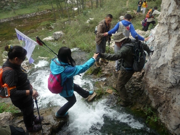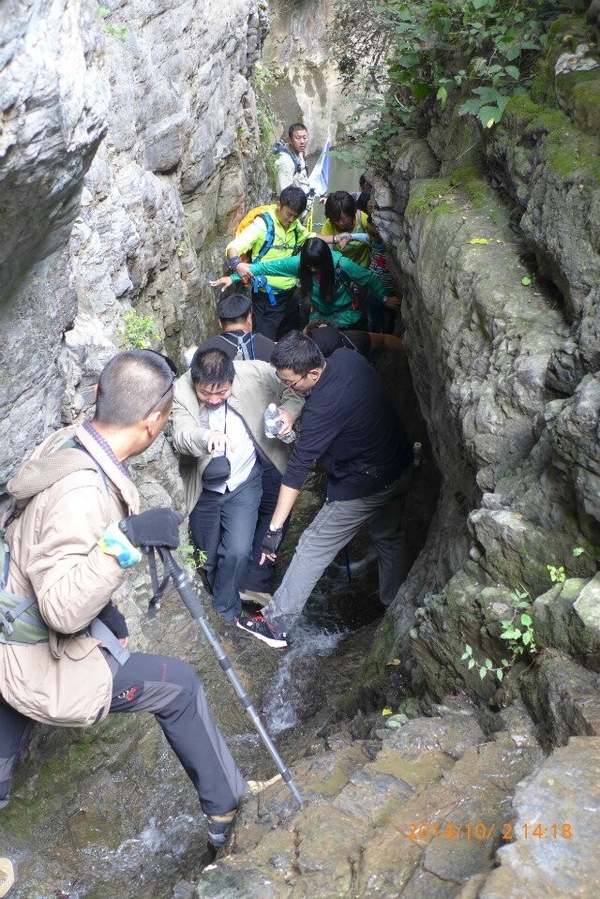 理论上杏唐沟穿越领队:阳子,小草,中队协调:佐笾,收队:星星,山岭。 但是遇到山崖险峻,山路湿滑的地方,队伍就变成了后队变前队,星星,山岭,浪子等人帮助大家渡过危险的地方。同样,“深呼吸”的其他成员也高度自觉地尽自己力所能及的帮助身边的人,以行动落实我们的口号,男士帮助女士,大家一起帮助老人和孩子,我们团结友爱,不抛弃不放弃任何一名队员。越是危险的时候,越能体现出“深呼吸”是一个温暖友爱互帮互助的大家庭。