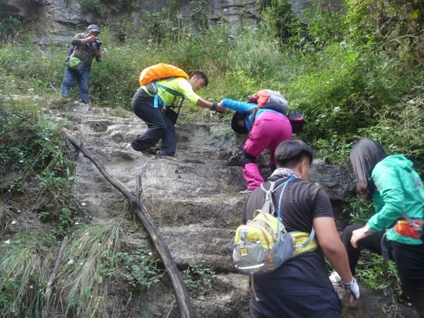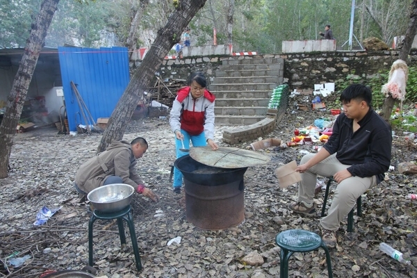 情人谷之后,回到保涞路上,休息片刻便前往三仙洞。由于距离太远,为了节省时间我们雇佣了两辆小车将我们带到山脚下。简单的自备午餐后休息片刻,饭后大家开始自娱自乐爆笑点。