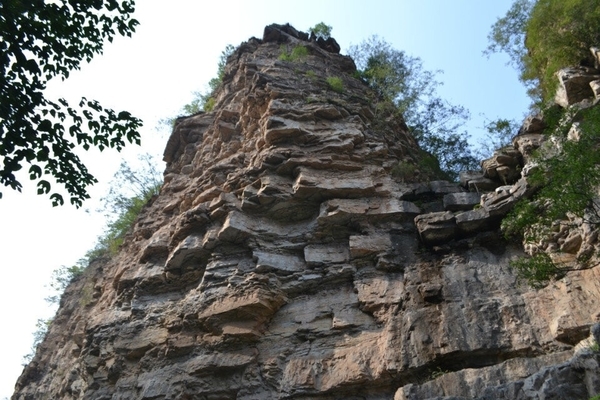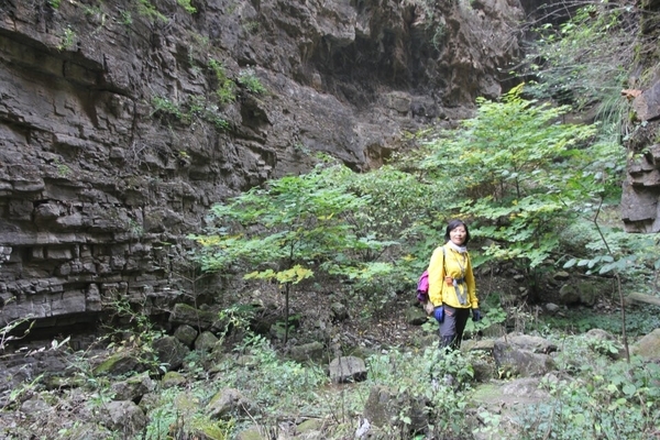 我们继续沿着崎岖的山路上行,沟内林木蓊郁、花草茂盛、鸟鸣蝉叫,一派生机盎然的奇异美景令人流连忘返,真是太行山水精华荟萃之地啊。越往里走,景区的地质、地貌越原始,自然景观越独特,罕见的喀斯特地貌,构成的奇峰险崖尽收眼底,奇形怪状的山石,无论是线条还是色调,都有国画的深韵,令人叹为观止。正如王安石《游褒禅山记》中说世之奇伟瑰怪非常之观,常在于险远而人迹所罕至焉