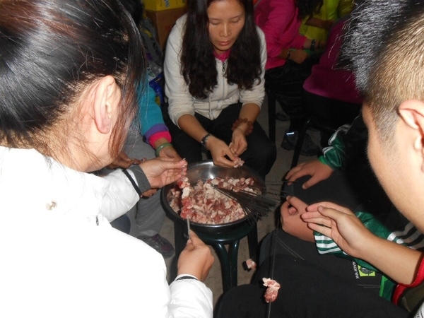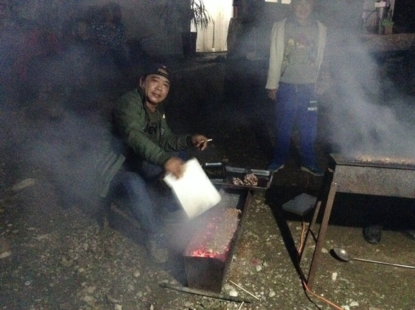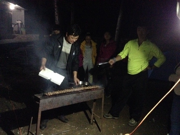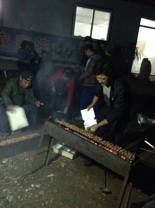 我们乘坐大巴到前往先预定好的农家院吃饭住宿。到达农家院大家并没有表现出任何的疲累而是纷纷帮忙自己考起了羊肉串。所谓自己动手丰衣足食,既能感受劳动的愉快又能吃到自己做的食物而欣喜。