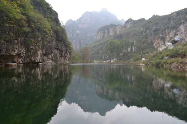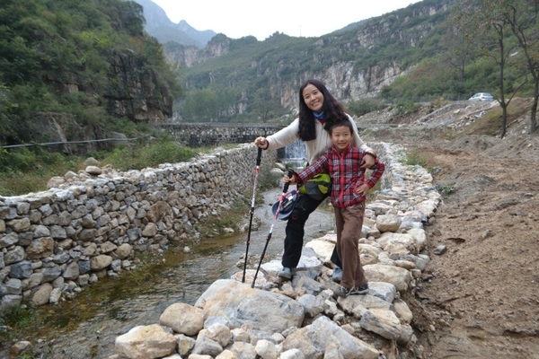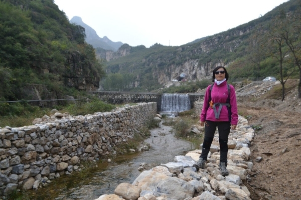 沿着村中幽静的小路溜腿,观赏沿途唐河蜿蜒奔流,倒也十分惬意。    鹤峪口尚未开发,今天这里可真是清净至极,只有我们一行人,真是一个与世隔绝的世外桃源。大约二十分钟我们就来到了山脚下。