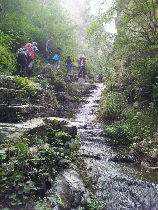 徒步过石门拾级而上后,首先进入的就是遮天蔽日的大峡谷,两侧壁立千仞,高耸云端,中间峡谷悠长,溪水潺潺,从万丈崖顶垂挂而下,连天接地,恰似亘古不变的连天接地;细密的水雾扑在脸上,好像是情人那湿漉漉的吻,清新而甜蜜;壁崖间形态各异的石头,尽情地展示着历史的馈赠。