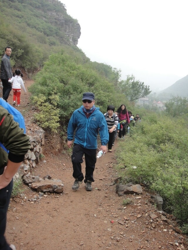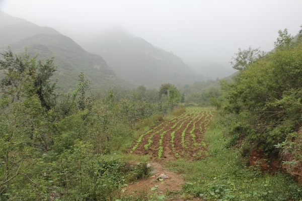 八点出发前往蚕姑坨,蚕姑坨位于易县西山北乡沙岭村,是一处尚未开发的原生态旅游景区,号称狼牙山五坨之最,山势险要,风景奇特秀丽。蚕姑坨脚下的沙岭村现在已经有很多接待游客的农家小院了,吃饭住宿也是相当方便的。穿过村庄,沿着山间小路穿越而上,刚一进山被眼前的绿色所折服,绿的山,绿的草,高高低低相互点缀。呼吸着新鲜空气,欣赏着田园风光,完全忘记了城市中的喧闹,去体会这里带来的那一片自然与和谐的气氛顿时心情愉悦,就连脚步也轻快起来。