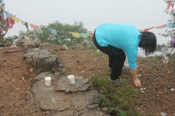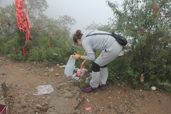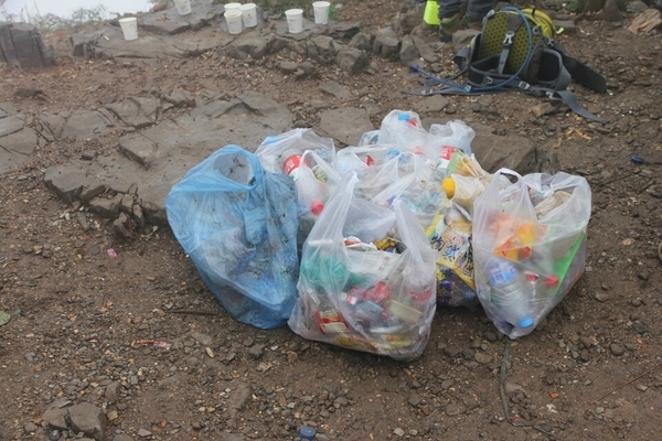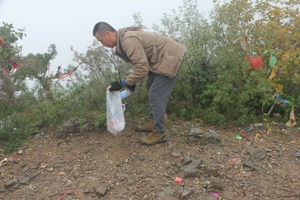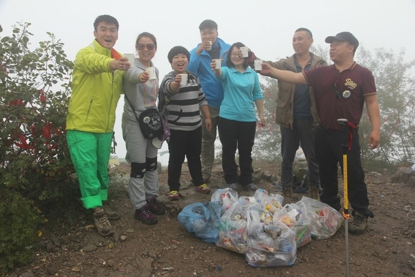 山顶上以前驴友留下的垃圾琳琅满目,脏乱不堪。“深呼吸”的精神是:拥抱大自然,回归最原始的自我,所以我们要热爱大自然,保护环境,从我做起,做一个高素质的驴友,所以大家纷纷自觉清理垃圾,维护环境卫生。看着干净的地面心情舒畅,喝杯咖啡庆祝下