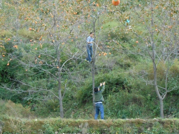 到这里十一游北太行的行程基本结束,回农家院吃完午饭就可以回家返回天津啦,最后一顿午餐尤为丰盛,农家院老板宰鸡杀羊热情招待。午饭过后我们踏上了回家的旅途,中间有个摘柿子的小插曲。“深呼吸”大家长佐笾花了200元请大家吃柿子,可以随便采摘。大家分工合作,有爬到树上摘的,有在下面接的,大家在一片欢声笑语中,带着柿子满载而归