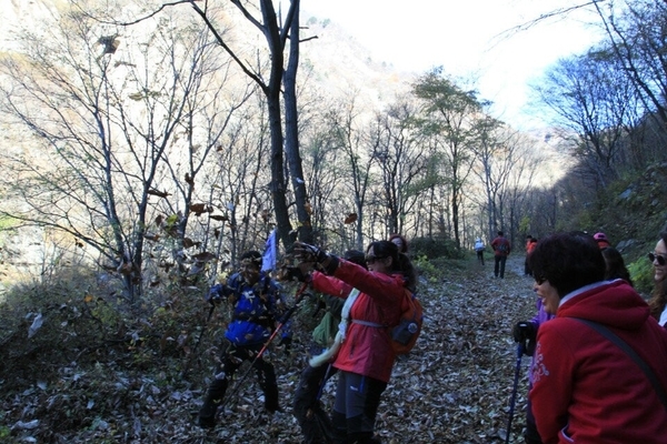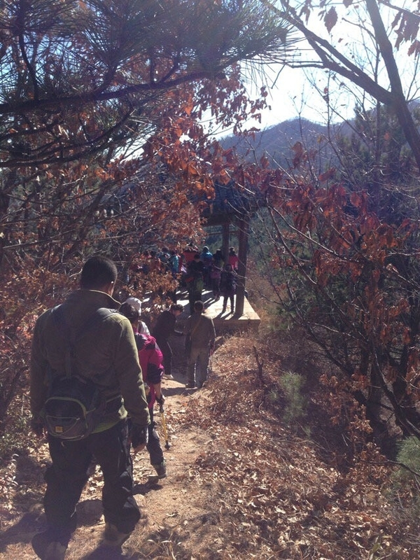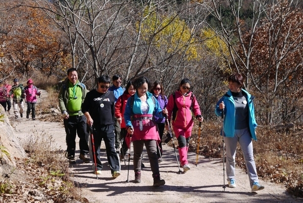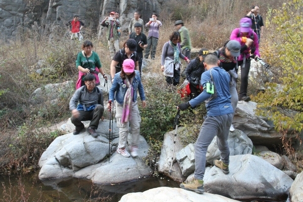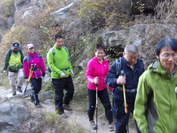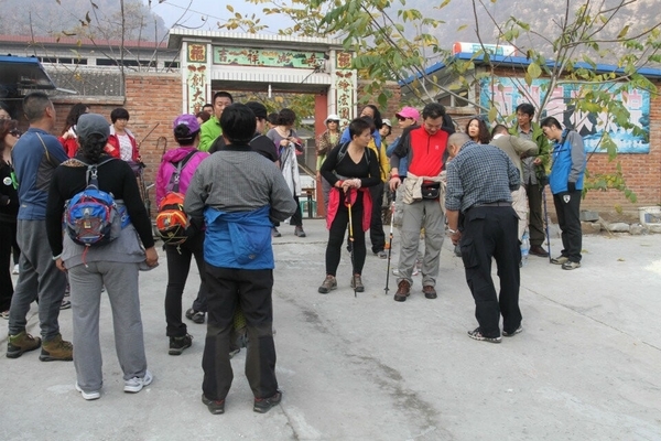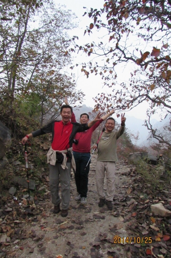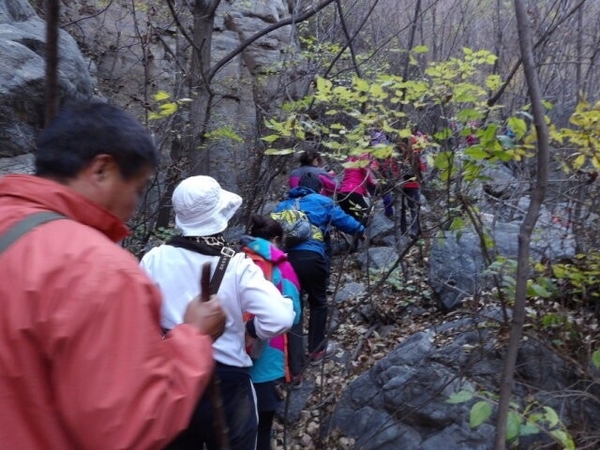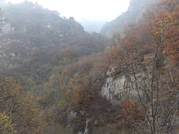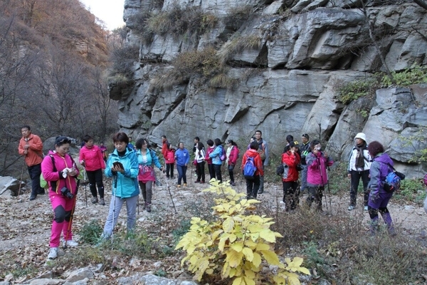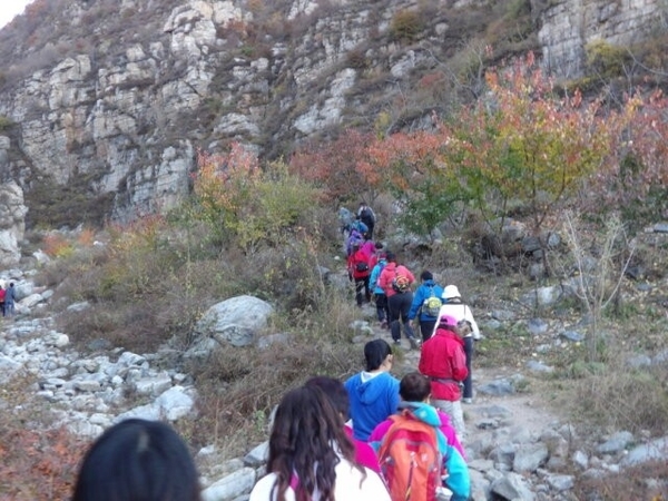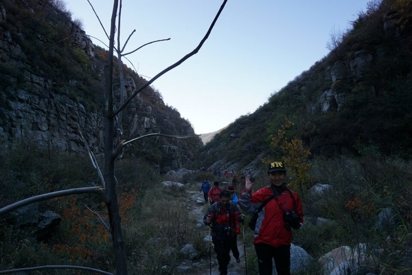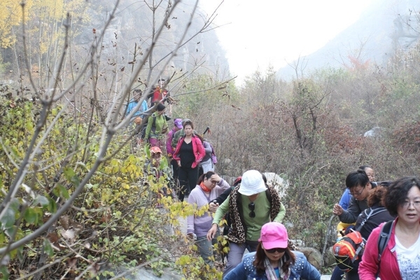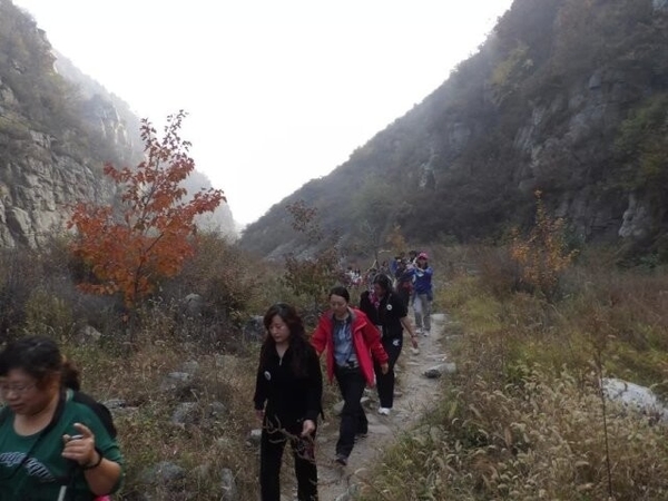 D1.  10月25日早7:450出发,因雾霾高速关闭,又遇武清马拉松部分路段封闭,遭遇堵车,下午15:00到达景区附近农家院住宿点,分配房间简单整理,出发前佐笾给大家讲解路线及注意事项15:30分由领队带领大家前往龙潭,队伍沿着山间小路整齐有序才程“一”字前行。