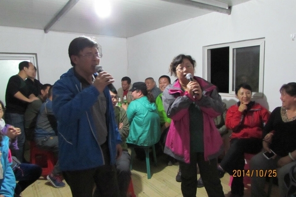 热情的农家院老板早已经为我们准备了可口的饭菜,为我们洗脱了一天的疲累。这边饭桌上觥筹交错,开怀畅饮,那边点歌机旁歌声优美动听掌声不断。