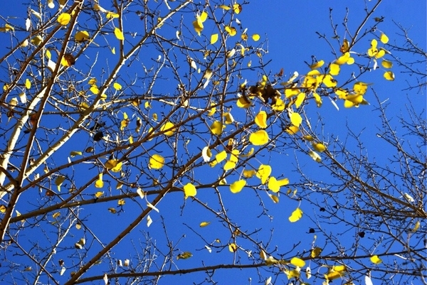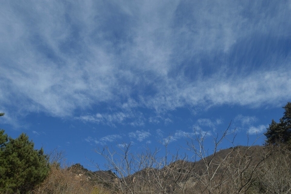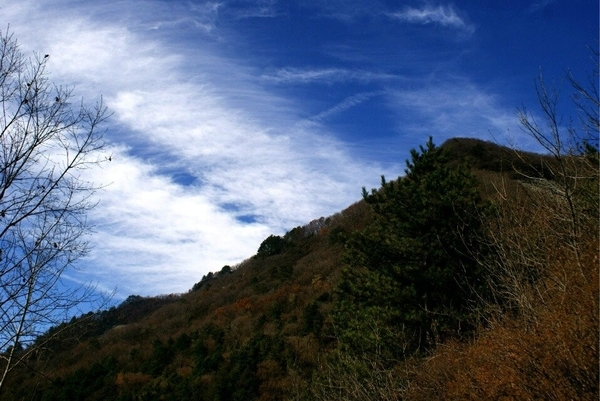 一颗路边的小树有一种潇洒超脱的美。每一棵大树在落尽了曾经蓬勃的叶子后,枝干显得格外的舒展、挺拔,在金色阳光朗朗的照耀下,向着高湛的蔚蓝天空,纵情摇曳着轻快的枝桠,让秋光衬托出它奇异的风骨,它潇洒地伫立在山间小路一旁同时它也傲然地挺拔在峰峦间,为驴友们展现出一幅幅震颤心灵的神美的图画。