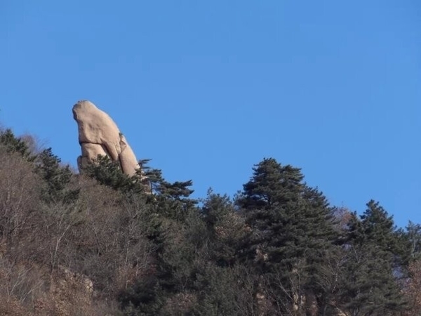 在一片绿色林海包围中我们看到了像鹰嘴一样的石头,无疑这就是鹰嘴石。在山脚下休息片刻直奔八拔沟