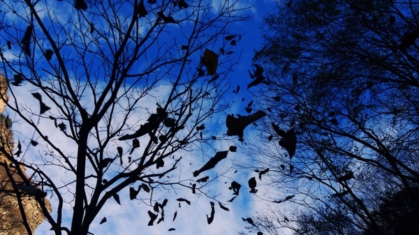穿越林海时,我们能感觉到一种绚丽宁静的美。每一棵树的叶子经过了风吹雨打,到了秋天,有的变成了金黄,有的化成了火红,有的沉淀为深褐,也有的仍然在枝头闪耀着黛绿。然而,毕竟是深秋了。阳光变得柔柔的不再炽热,秋风吹来的也是萧瑟的寒冷,因此,缤纷的树叶知道,该是离开树枝的时候了。于是,它们依依地唱着离歌,静静地飘别了曾经相伴的枝头。在秋风中,它们默默地飘向四方,或是轻轻地漂浮在水中,而更多的,则是安然地飘落在大地上,将大地铺成了色彩斑斓的落叶的毯。是呵树叶就是以如此绚丽的方式告别了母树,一切都从曾经春夏的绚烂回归到秋天的宁静与恬淡。