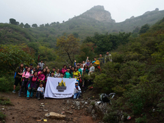 本游记最后由娜娜于2014-10-17 00:00编辑 【深呼吸】金秋赏美景寻古迹,畅览北太行风光 告别夏日的酷热,在西行秋雁的鸣叫声中,一丝丝的凉爽悠然飘来。秋高气爽,天高云淡,风轻雨润,在这秋风送爽的十月,在这喜悦收获的季节,深呼吸一行40人借着十一长假,走向旷野,金秋季节赏红叶,畅游北太行山脉,观瀑布,爬岩梯,游山玩水寻古迹,访道教名山,吃酸枣,柿子,轻装户外,品大锅炖菜,烧烤,回归自然风光,用双脚丈量土地,用相机记录美景。 D1 杏唐沟 10月2日 早上7:30 河东区六纬路东兴路轻轨站C出口集合,7:45出发大约中午十二点到达杏唐沟风景区,简单的自备午餐后我们开始进入景区。 抬眼望去,一棵粗犷的人造古树跃入眼帘,它弯曲盘绕成拱形,犹如景区的大门,上面写有“杏唐沟””三个遒劲的大字。杏唐沟(又名杏唐沟大峡谷)位于河北省顺平县神南乡王家庄西北,地处太