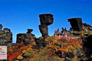 这里自然风光秀丽,蘑菇石俨然是梵净山的一张名片,上下两节,似连非连,稍有风吹,仿佛摇晃;是造物主举世无双的一座魔幻现实主义经典雕塑,它已经在风霜雨雪中飘摇10亿年以上。它如今作为梵净山的形象大使,走向了全国,走向了世界。