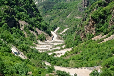 途径平谷的滇缅公路,玻璃台村后,一条水泥修筑的盘山公路直达主峰,山路十八盘,弯弯曲曲,远远望去,酷似二战时期的滇缅公路。