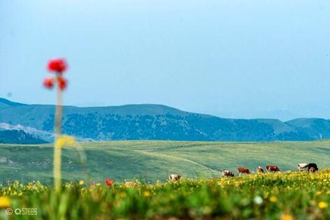 避暑胜地、高山之巅,坦荡如砥,绿草如茵、繁花似锦、蓝天白云,清风送爽,一个可以驾车穿行空中草原!