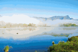 湖面的倒映将一切重现,静谧中如梦如幻。