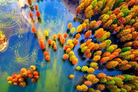 当黄叶渐落,便是红叶最美的时候,秋冬之际,池杉慢慢变红,就到了四明湖最美的时节。