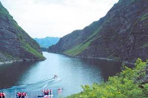 到达游玩地点后,划船游桃花源。一支竹篙在手,“小小竹排江中游,巍巍青山两岸出……”,水中有山,山中有水,船游峰头,云游河底,如诗如画,再有“妹妹你坐船头,哥哥在岸上走……”,慕名而寻“塞外小桂林”的游客心满意足,过足了一把置身于江南水乡之上的瘾,纵使船儿不听自家招呼,曲折蛇行;纵使顺水而下,逆水而归后累得气喘吁吁,汗流浃背,听到的答复仍是“还可以,真过瘾…….”,其实游玩最重要的是在乎的一种身心满足之后的快乐感觉。