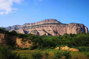 它是全亚洲第一大单体岩石,通体高600多米的摩天巨石,被誉为“北方第一大丹霞”;它有一种威严的王者气势,望着它,脑海中不由浮现出项羽那句著名的“力拔山兮气盖世”。