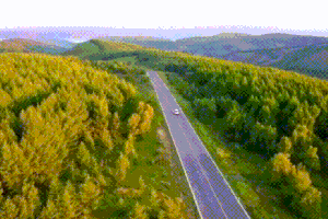 公路逶迤蜿蜒,连绵起伏