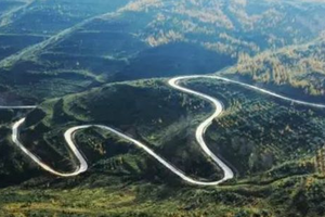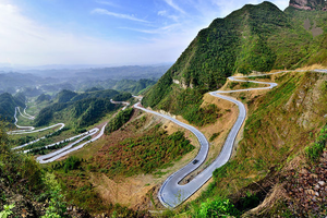 远望过去,整条路如同一条在群山中蜿蜒匍匐的青色蟒蛇,盘旋于两山之间,气势逼人,就看你能不能来征服它了!