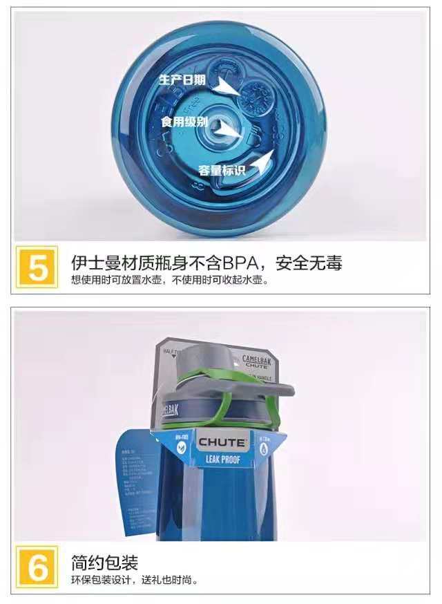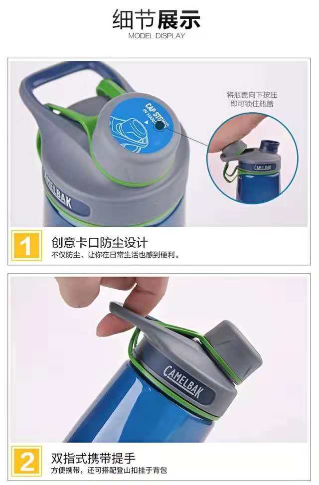 盖子是由聚碳酸酯制成。具有很好的韧性和密闭性咬阀盖顶的CamelBak Big Bite ? 阀,这个专利的设计可以使喝水更方便,防漏性更好。不用打开会拆下,轻咬并吸即可。是由医用硅制成,更长的寿命并且咬起来舒适。吸管是由聚乙烯制成,同样的材料用于奶瓶。