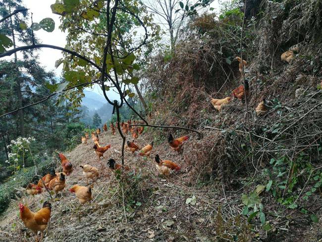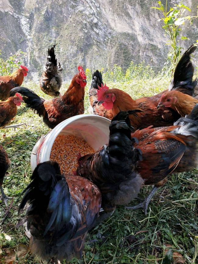 来自蓟县山区的跑山鸡,喜欢在山坡上肆意的奔驰,喜欢吃虫子和野菜,喂的是粮食而不是饲料